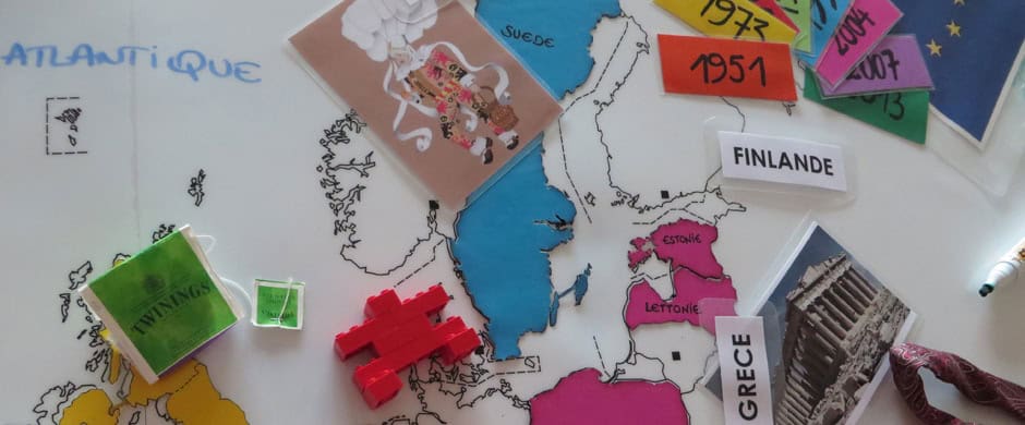 De façon ludique, les élèves découvrent quelques particularités de ses États-membres et construisent ensemble la carte de l’UE, les grandes étapes de son histoire et ses missions.